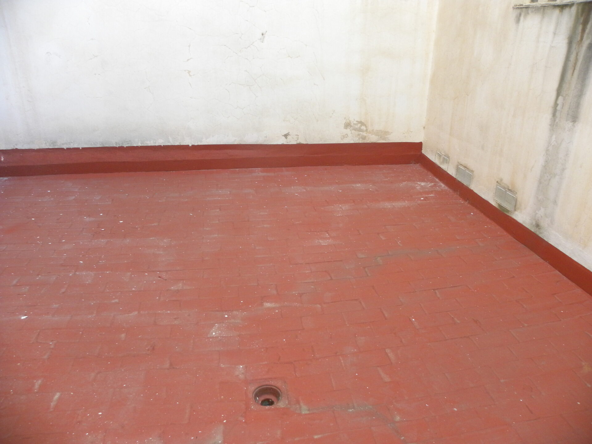 ▪ El suelo de la entrada al local, está compuesto por una rampa y un descanso, en granito abujardado gris perla.