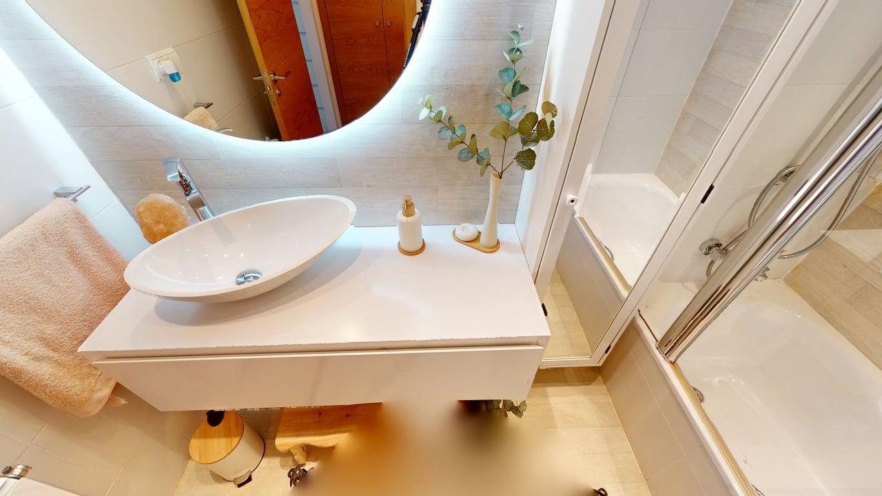 Dispone de 3 habitaciones dobles, siendo la principal una elegante suite con baño completo y armario empotrado. Además, cuenta con un segundo baño completo que da servicio al resto de la vivienda.
