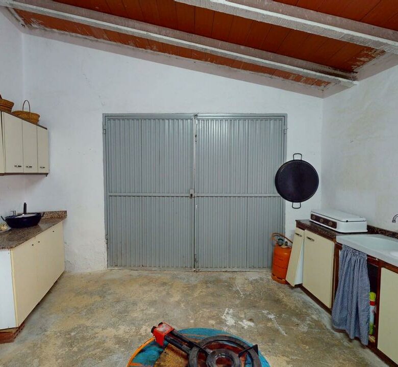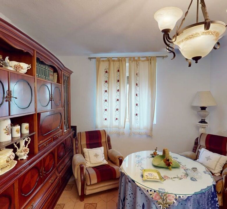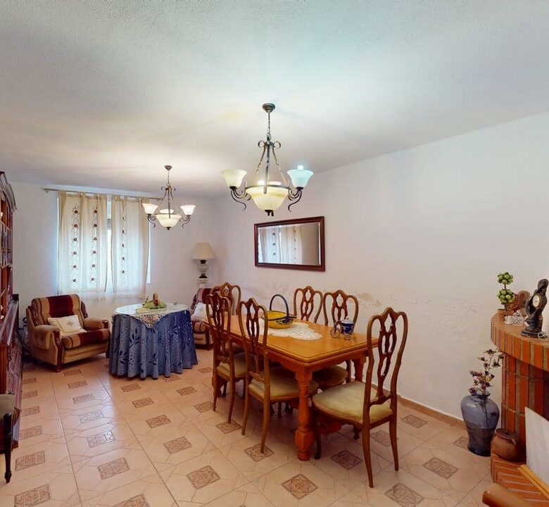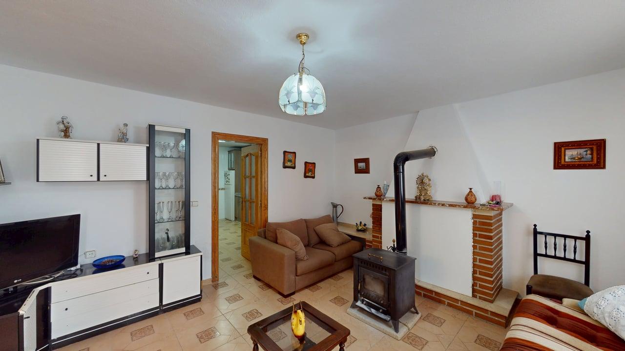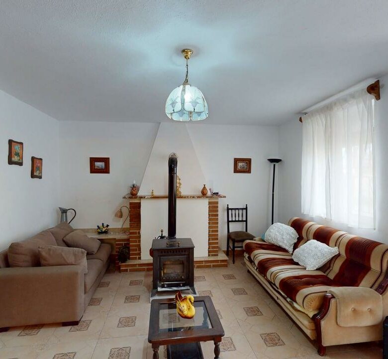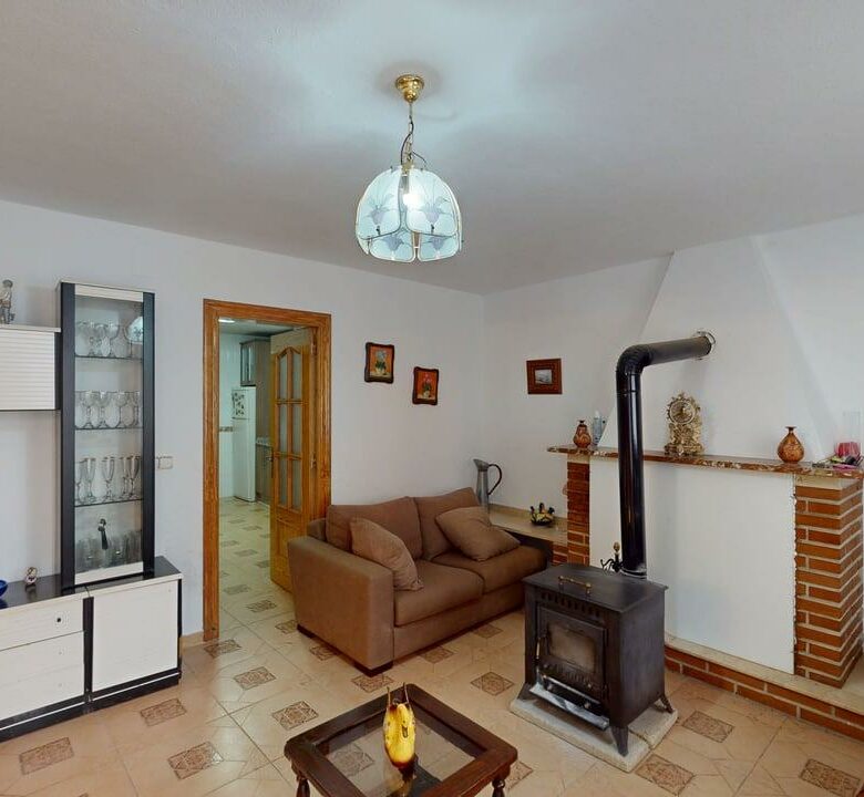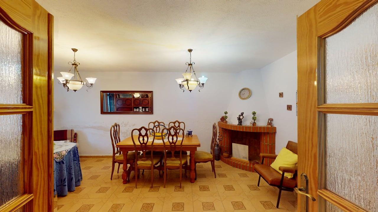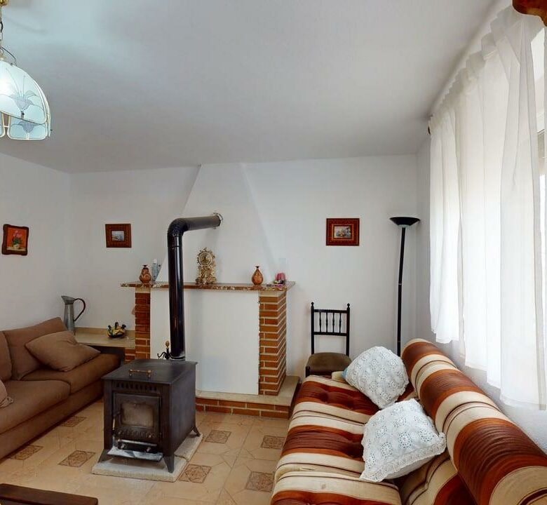 La planta baja se compone de sala de estar con estufa de pellet y chimenea, salón-comedor independiente, cocina amueblada y equipada con despensa, un dormitorio doble (principal) y un baño completo.