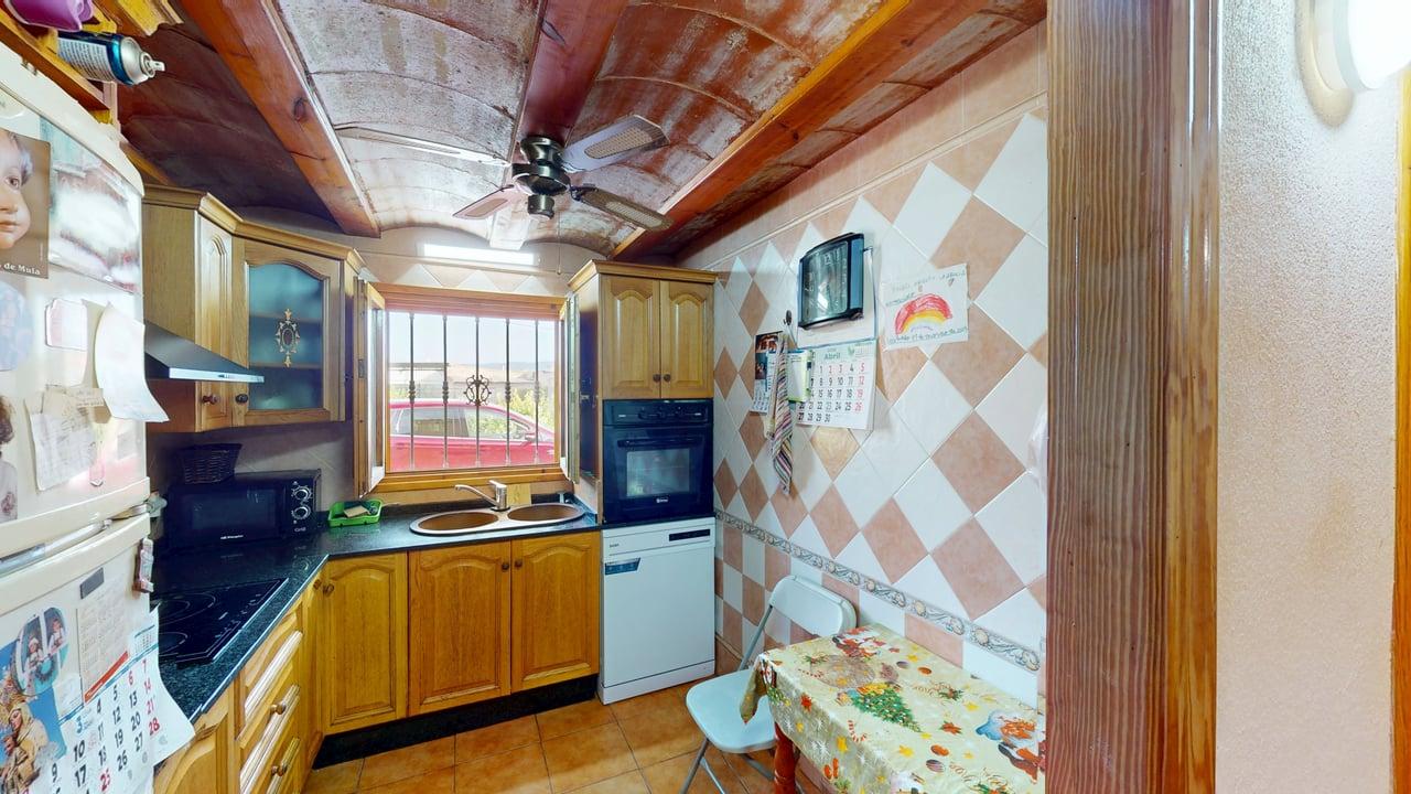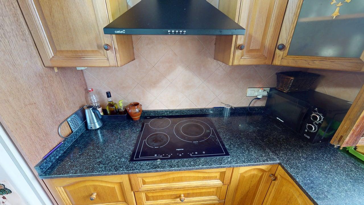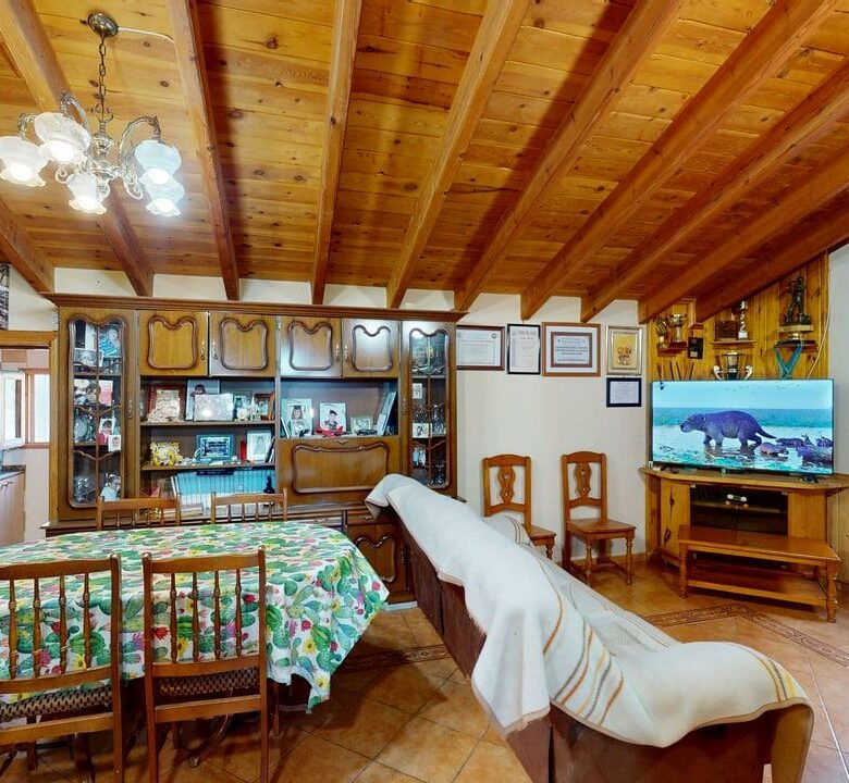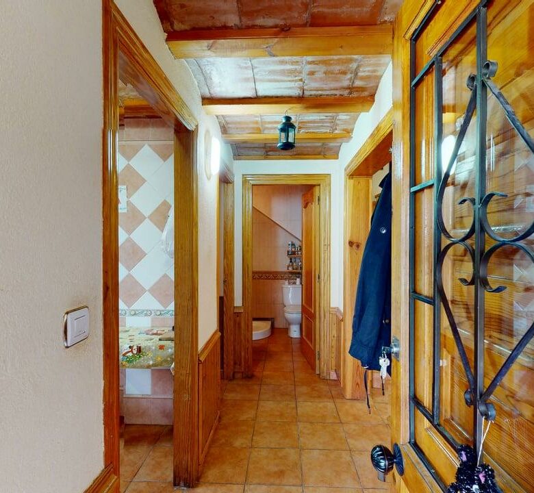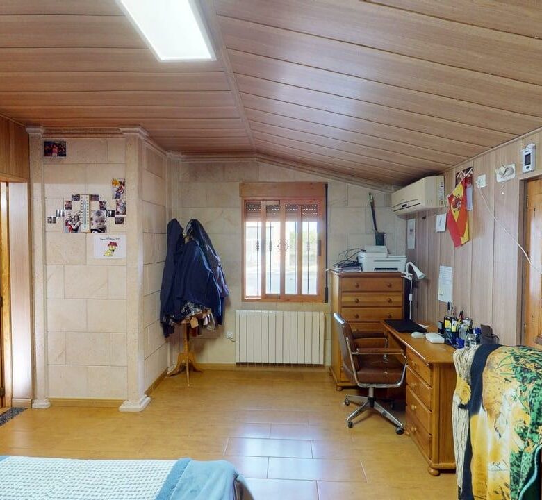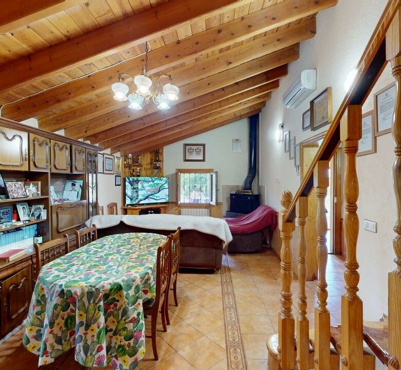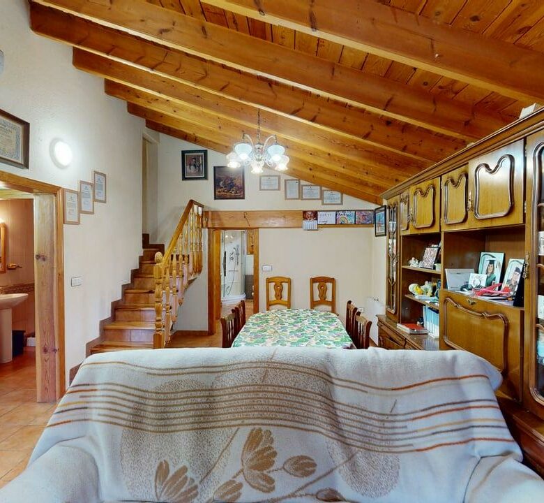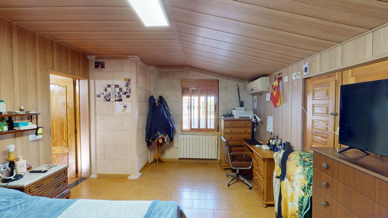 La vivienda dispone de 222 m² construidos, distribuidos en dos plantas con espacios amplios y funcionales. Al acceder encontramos un acogedor porche que da paso a una cocina totalmente equipada, un aseo completo y una habitación individual. Desde aquí llegamos a un gran salón-comedor con chimenea, muy luminoso y perfecto para reuniones familiares, que además conecta con una amplia despensa desde la que se accede a una cochera cerrada.