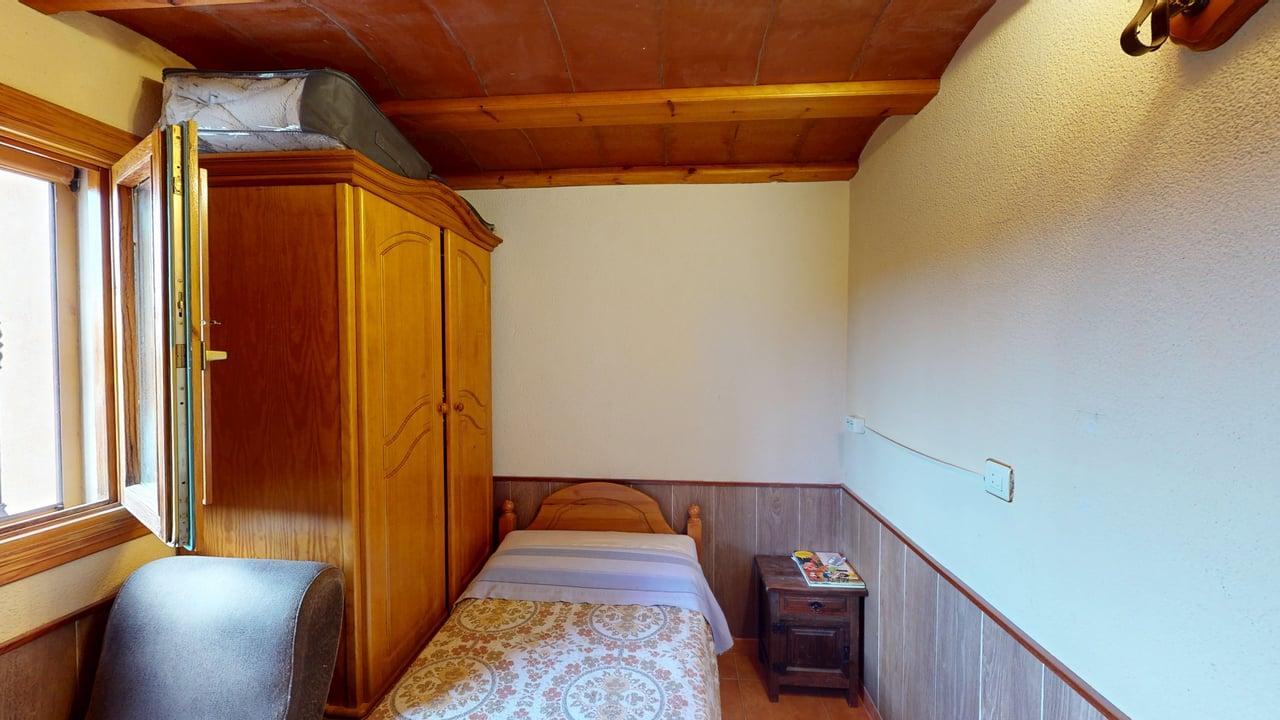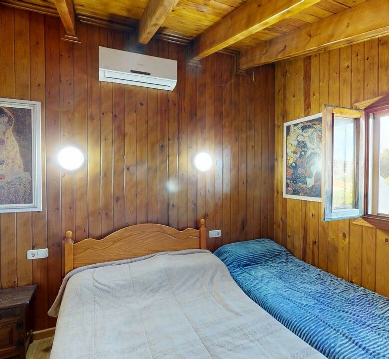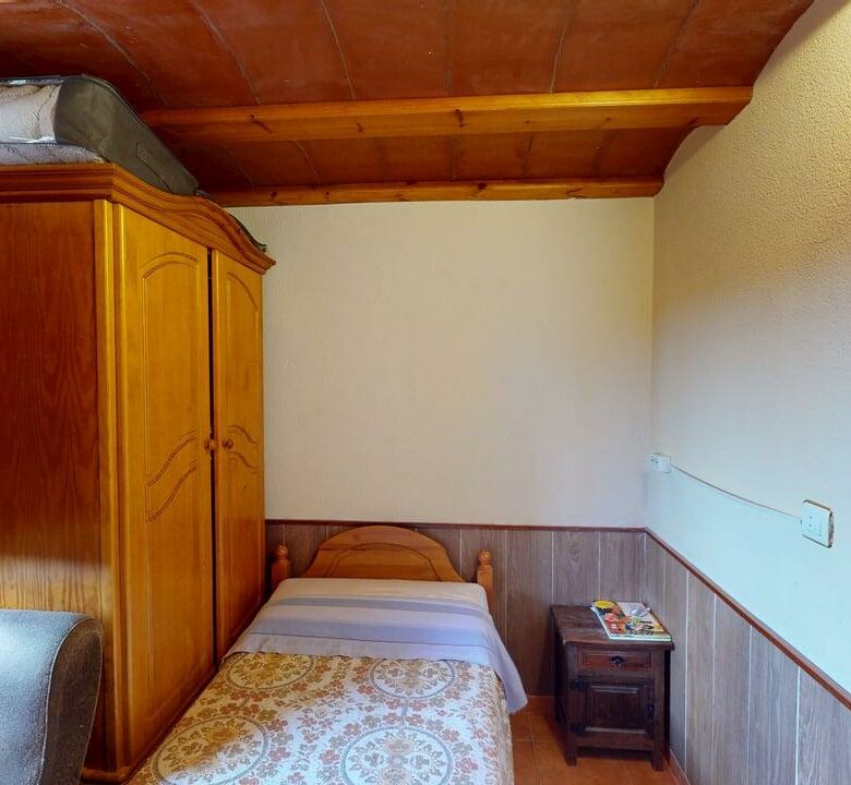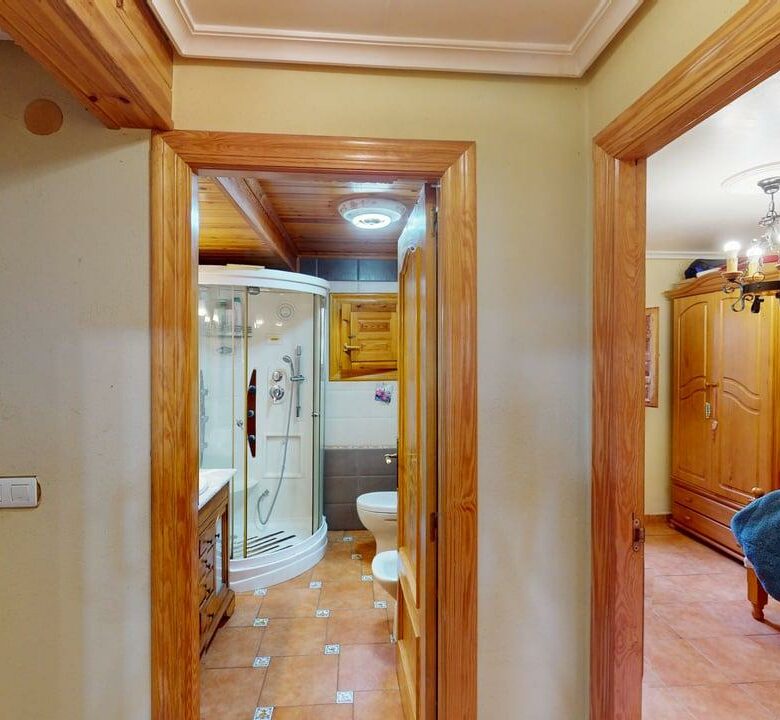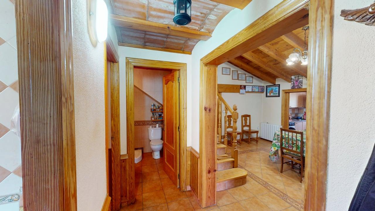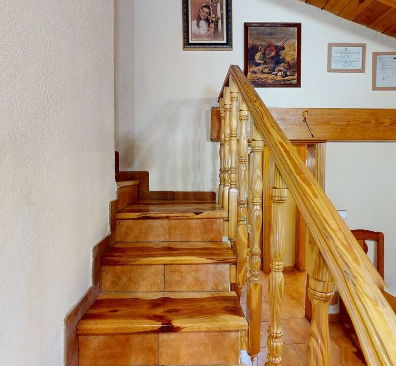 La zona de descanso se distribuye en la planta principal con un baño completo, una habitación individual y dos habitaciones dobles. Desde el salón, una elegante escalera de madera conduce a otra amplia habitación doble en la planta superior, aportando independencia y encanto.