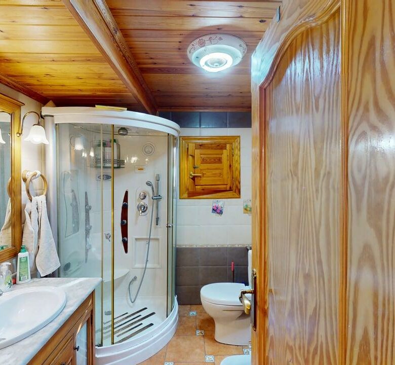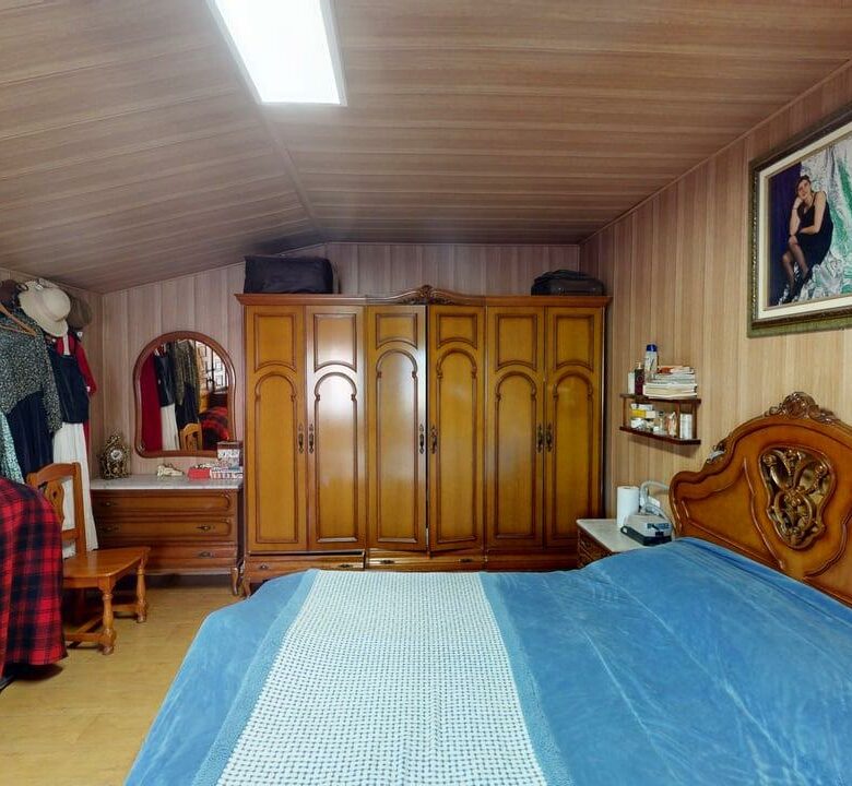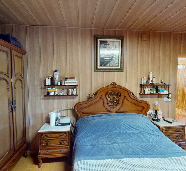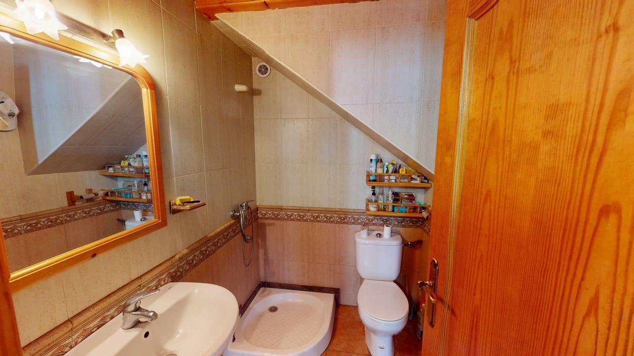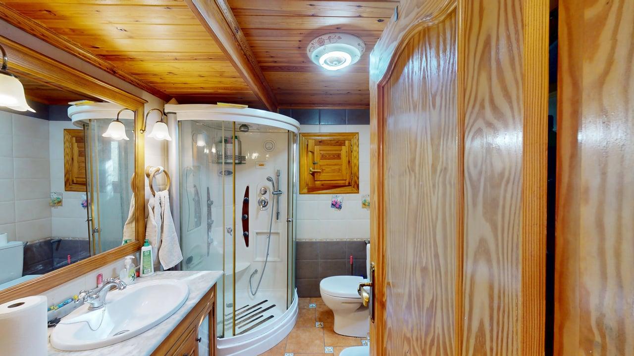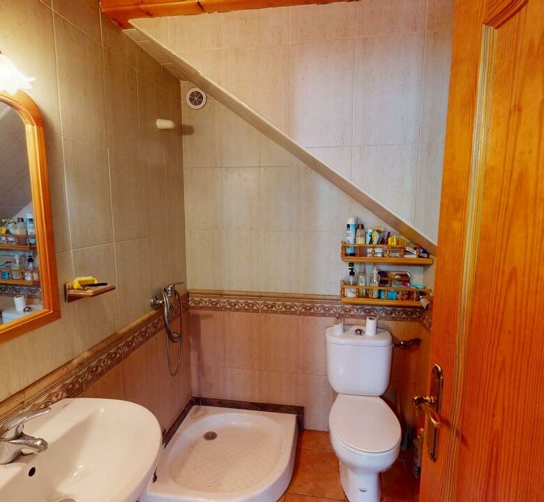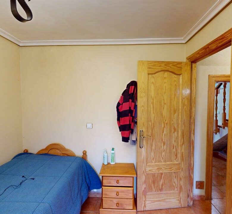 La zona de descanso se distribuye en la planta principal con un baño completo, una habitación individual y dos habitaciones dobles. Desde el salón, una elegante escalera de madera conduce a otra amplia habitación doble en la planta superior, aportando independencia y encanto.