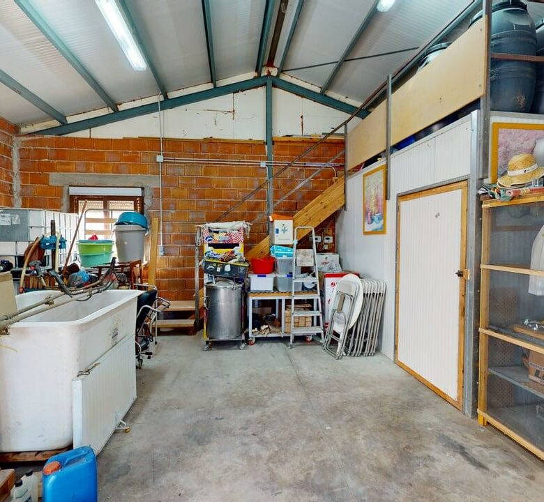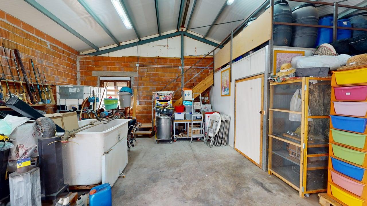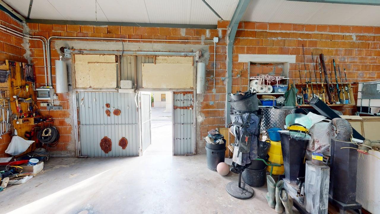 En el exterior, además de la finca ajardinada, encontramos una nave de 90 m², ideal como almacén, taller o espacio multiusos, así como amplio espacio de aparcamiento para varios vehículos.